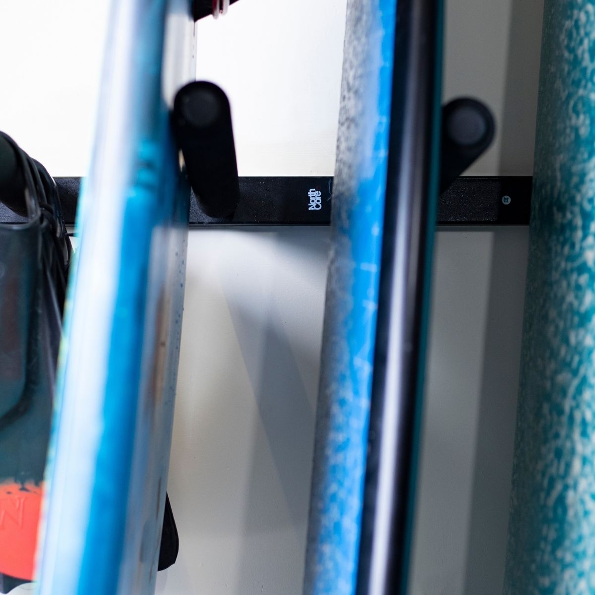 Precision engineered from high strength multi-stage corrosion prevention treated aluminium, the new Northcore quality EVA foam coated surfboard racks should last a lifetime. The Northcore quad rack can be wall mounted (fixings are included) either vertically for horizontal board storage or display or horizontally wall mounted to store and stand boards vertically.